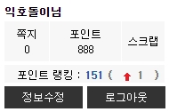 어제 30점가량 포인트 했는데도 랭킹은 한개만 올라갔네요;;ㄷㄷ