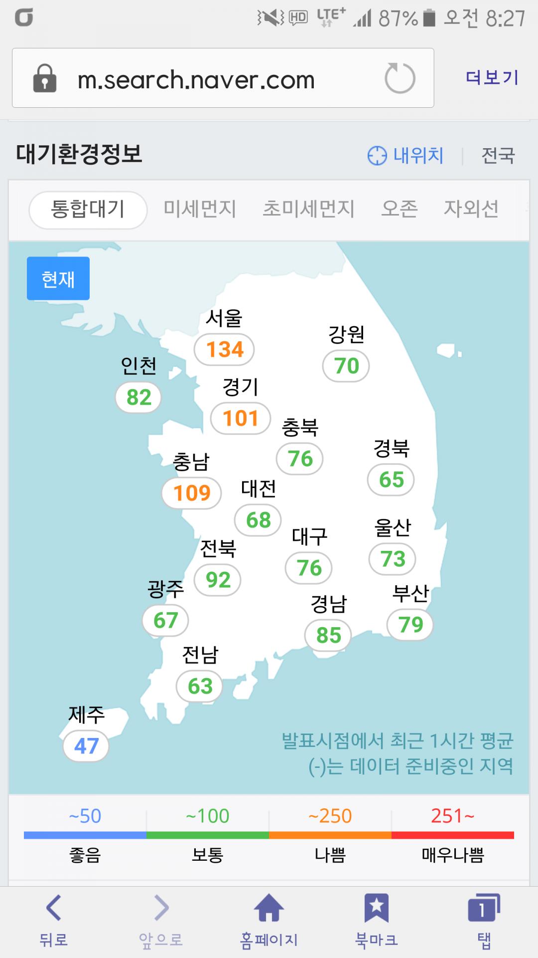 일본은 80부터 나쁨이던데 우리나라는 왜 100이 보통일까요... |