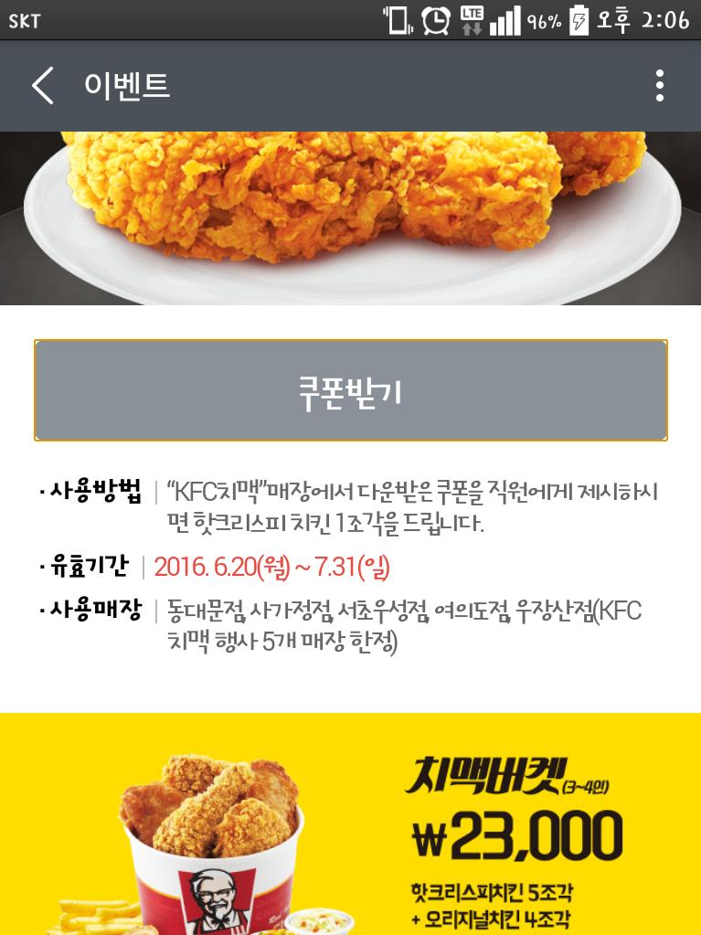 시럽앱에서도 kfc 카드 발급하시면 또 받을수 있어요. *^^*