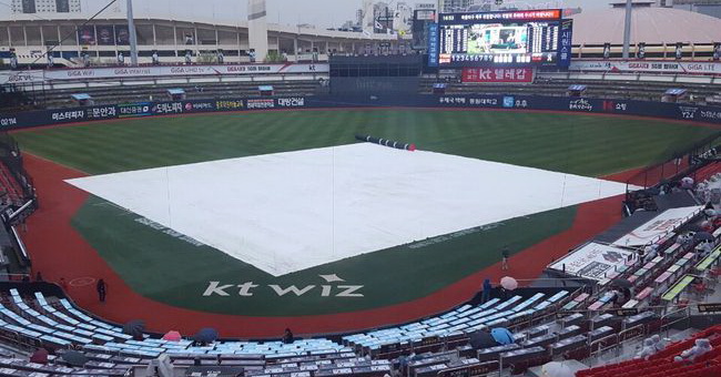 일전에 모구단이 연패 중일 시기에 비왔었는데 일부러 방수포를 덮지 않은 전례가 있었죠.. |