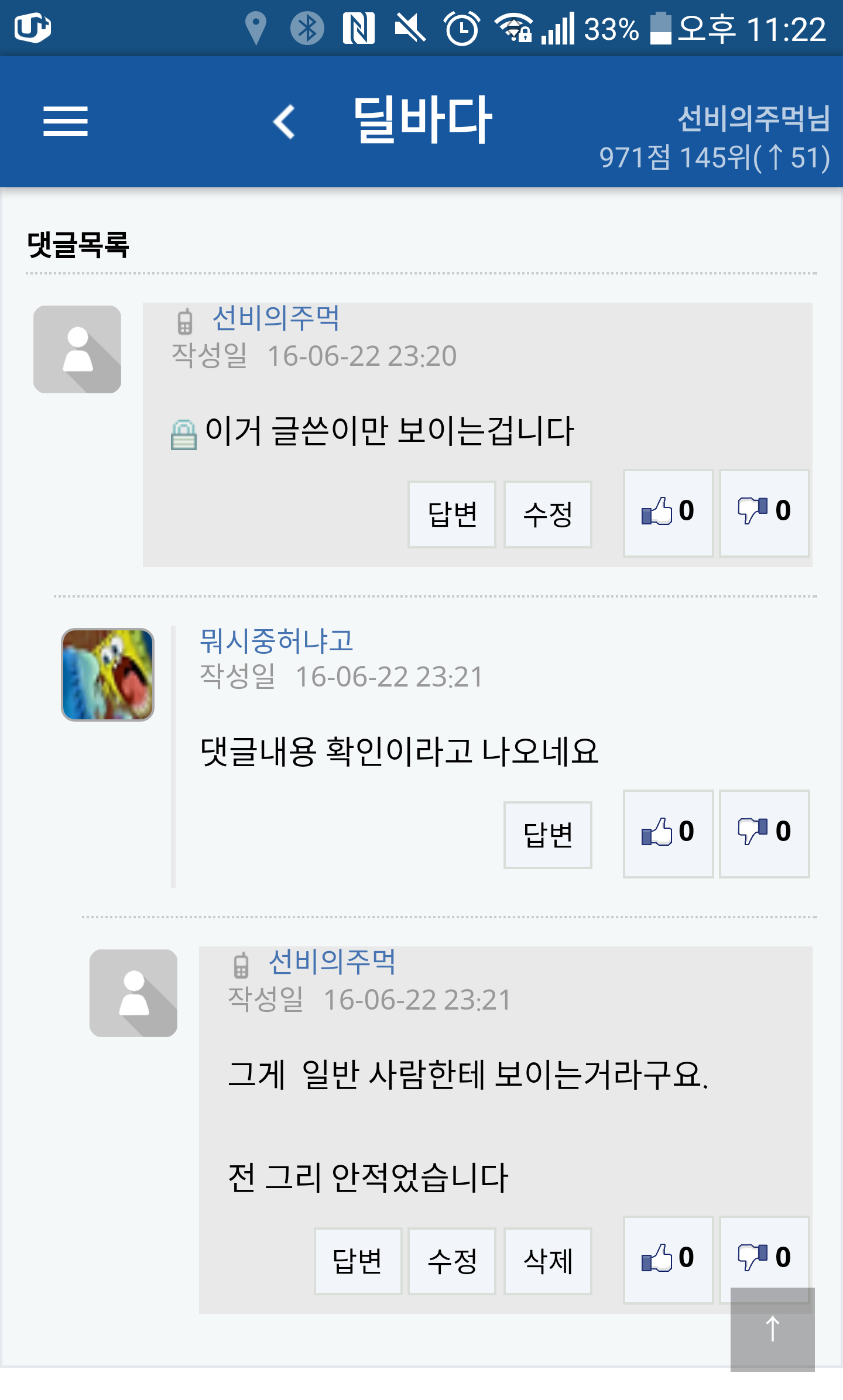 그럼 상습적으로 비밀댓글 다는 분은 정체가 뭐죠?
