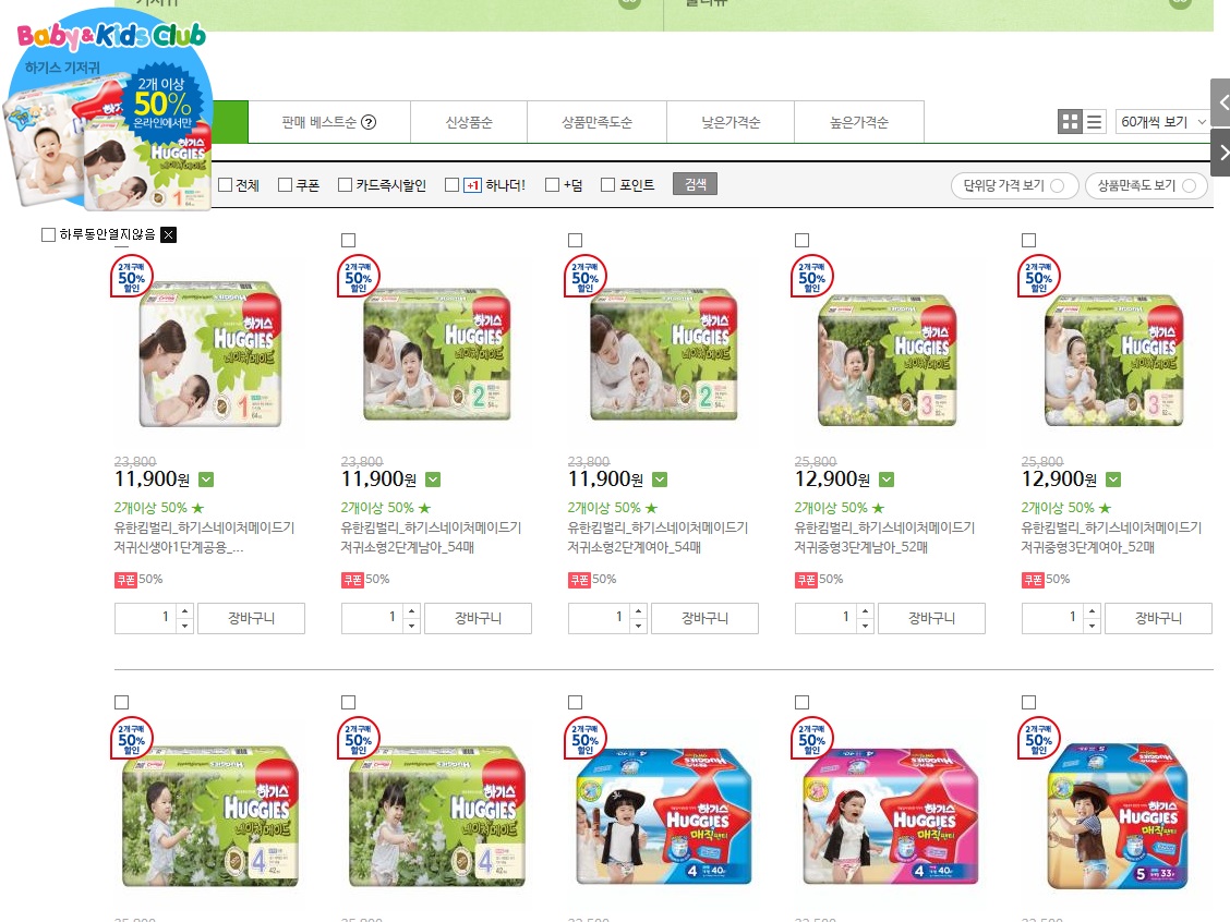 둘째 기저기 사야 했는데. 굿 타이밍.