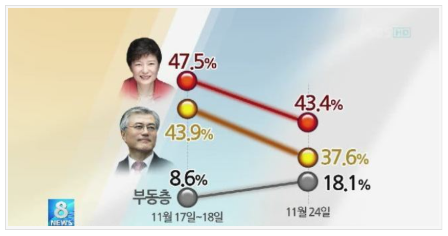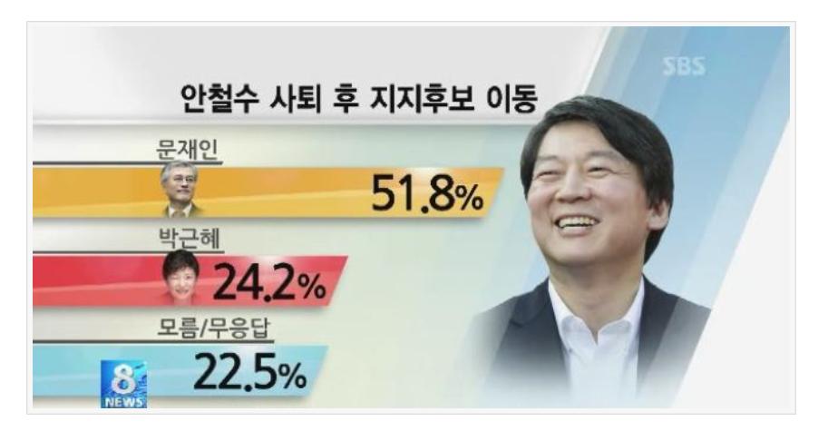 저건 안철수가 나갔으면 박씨 잡았죠 여론조사 그대로 유일하게 안씨가 박씨이김.. |