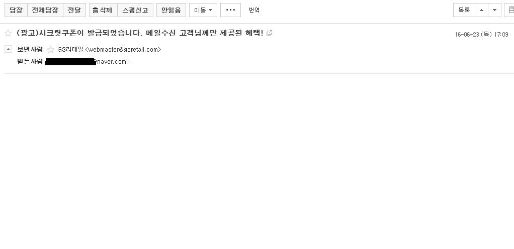 gs리테일에서 시크릿 쿠폰이 발급됐다고 메일이 왔는데