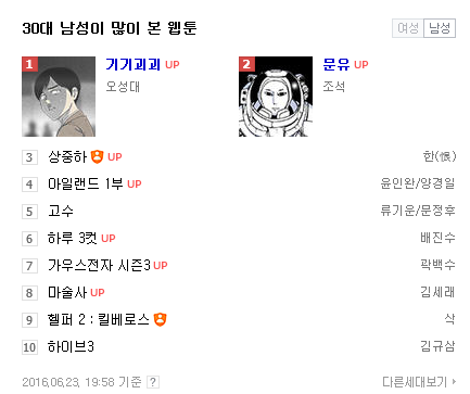 고수는 수요일 업뎃이라 오늘(목요일) 기준이면 순위가 내려간게 당연하죠. |