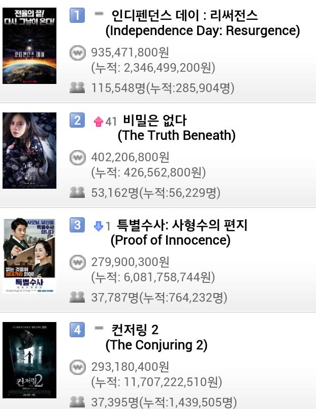 인디펜던스데이,비밀은없다가 나란히 1.2위차지했네요