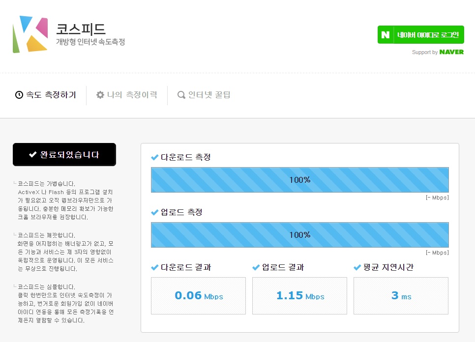 이상하다싶어 속도측정 한번 해봤더니 이건 뭐 ... 하 ...