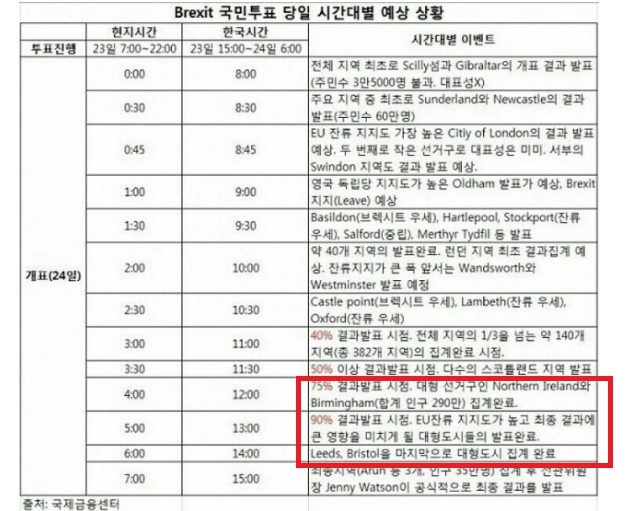 브렉시트 시간대별 개표 예상