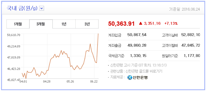 지금은 또 올랐네요ㅎ 금값은 참 아이러니