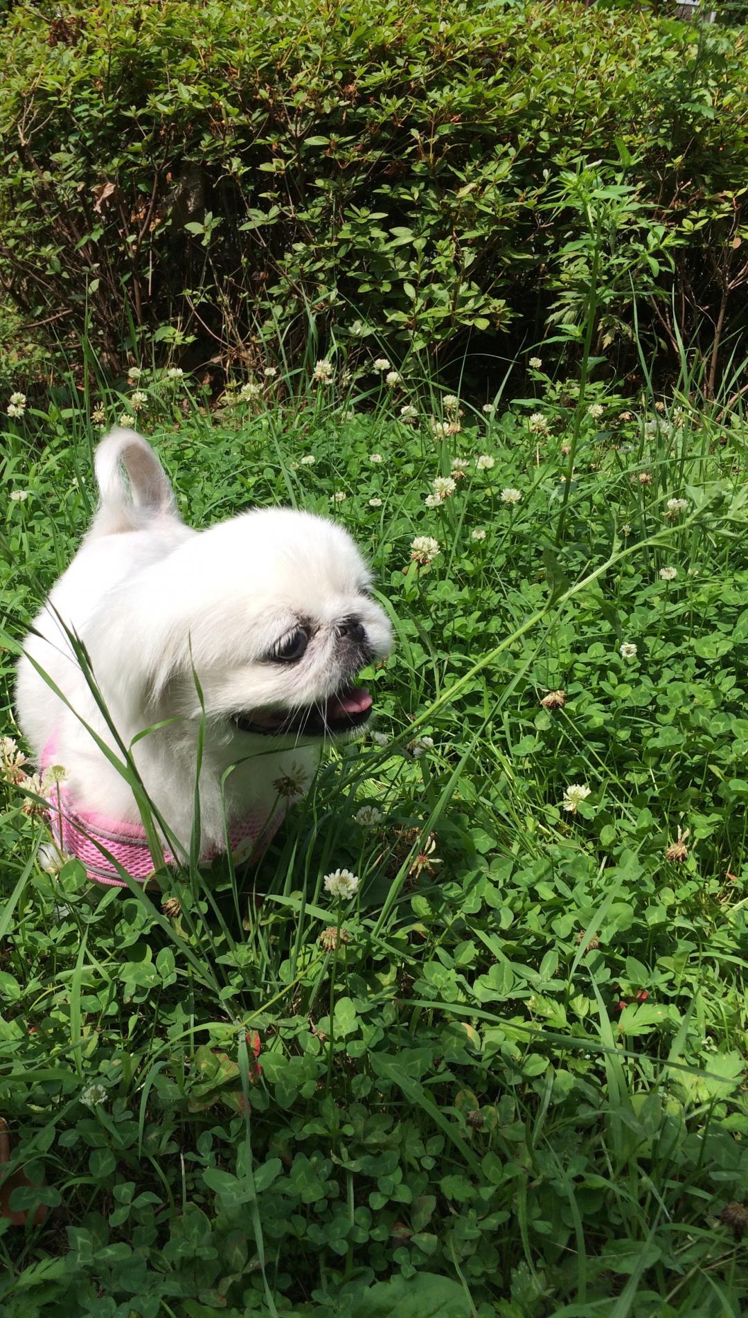 토끼풀 밭 신나서 저러고 있어요^^ㅎㅎㅎ |