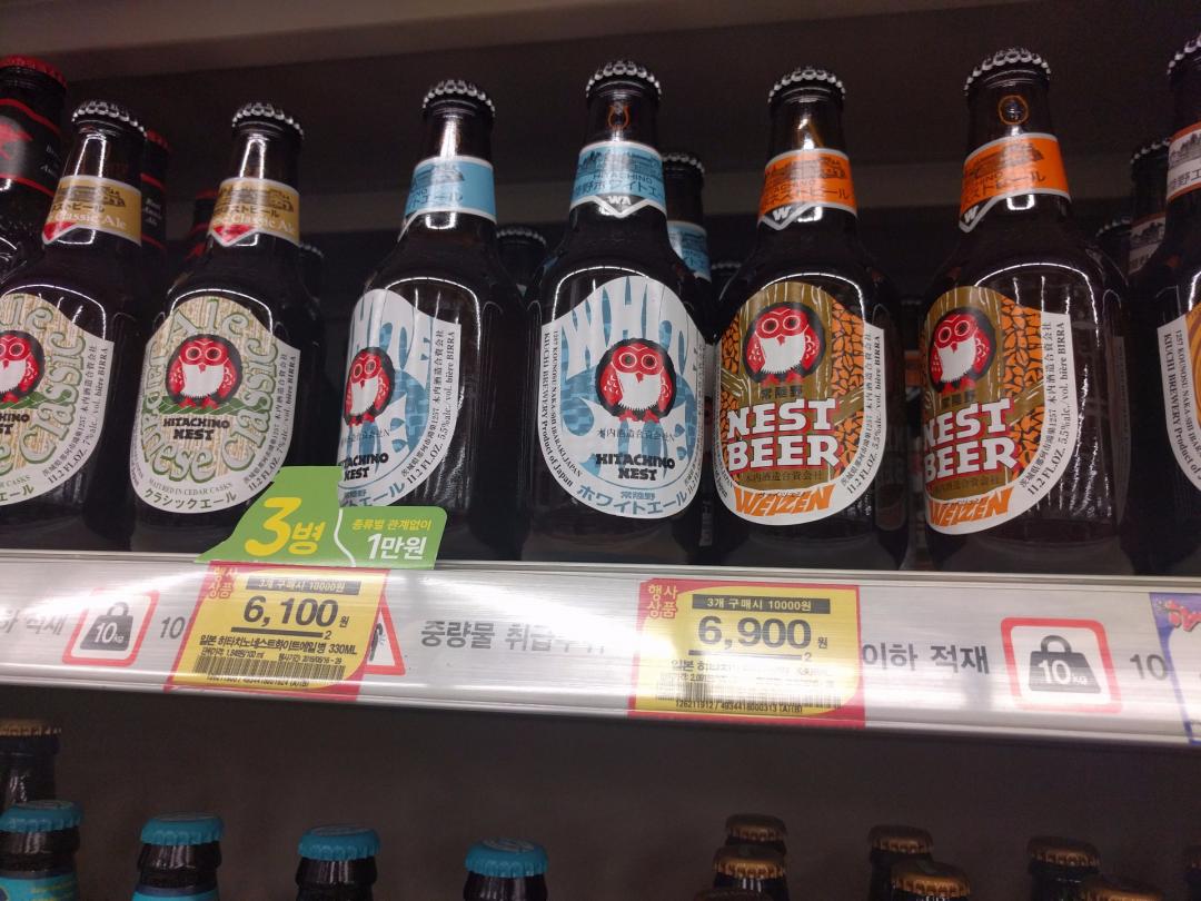 와 3병에 만원이면 진짜 싸네요!...라고하고 10분뒤 홈플갔는데 이미 히타치노는 전량 매진.... 듀벨이랑 다른 맥주만 사서 갑니다 ㅠㅠ |
