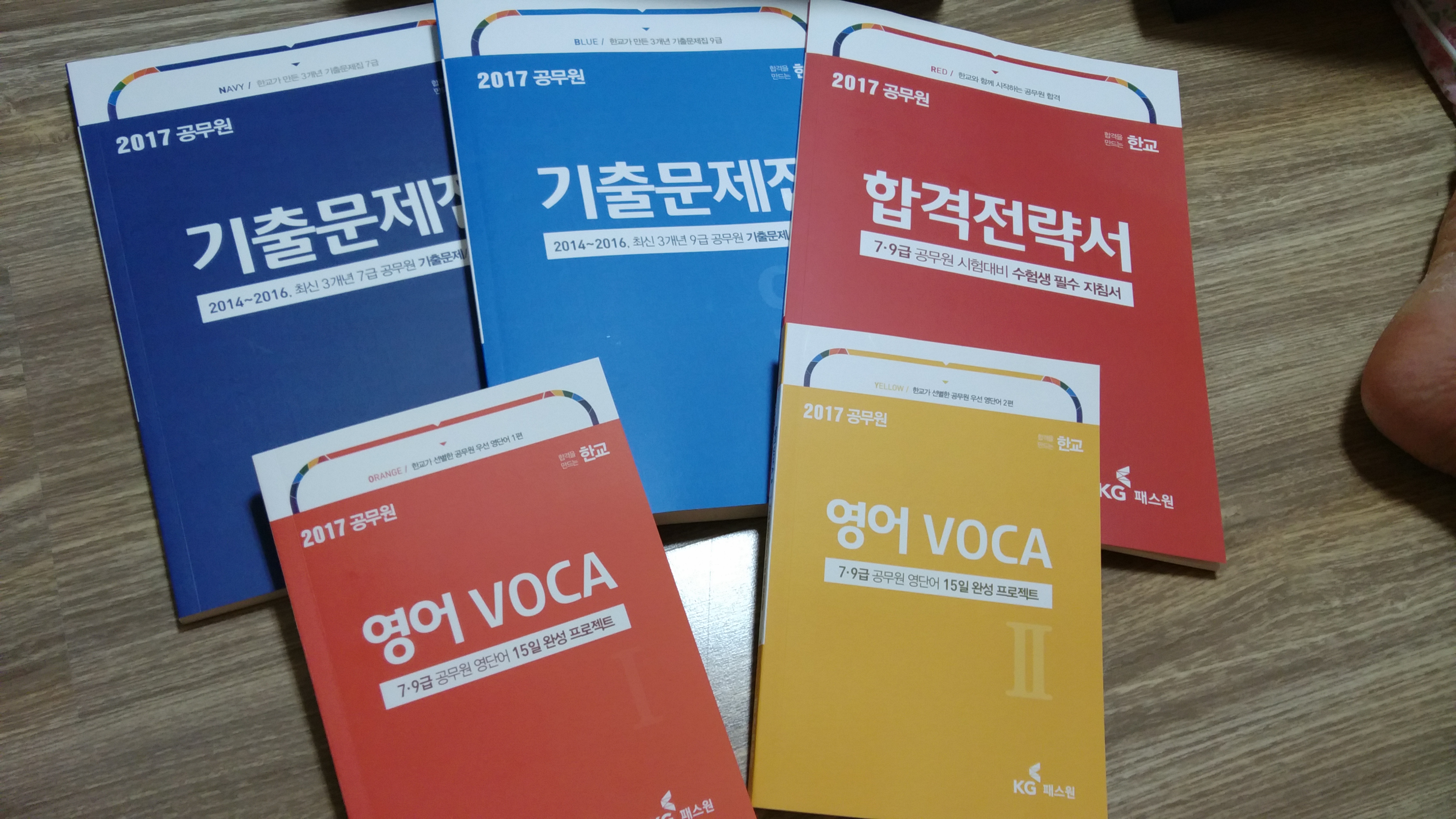 9급, 7급 3년치 기출문제집이랑 뭐 전략집, 영어 단어 책 요렇게 있네요..