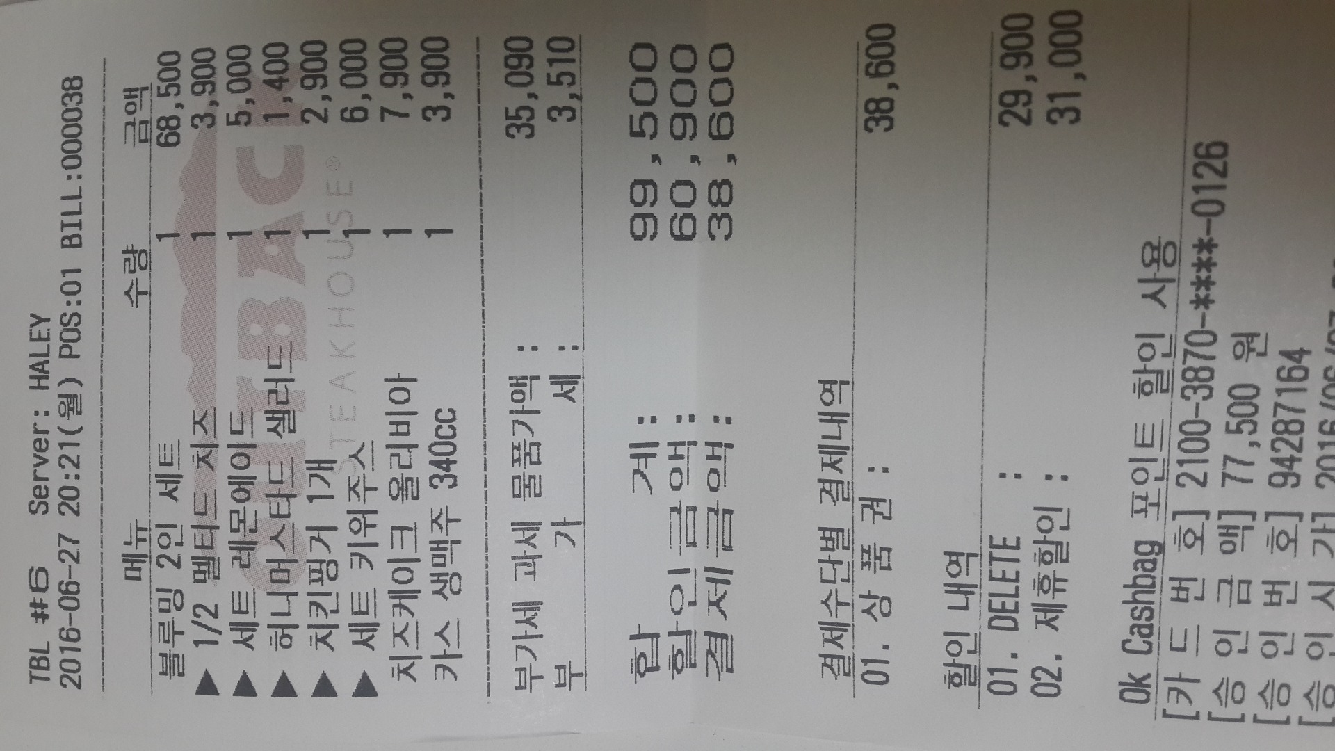 캐쉬백 만포인트정도 차감됐으니