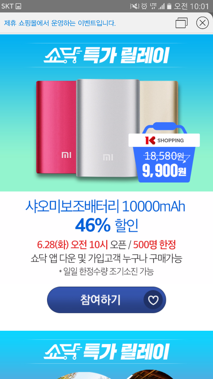 샤오미 보조 배터리가 9,900원에 올라왔네요