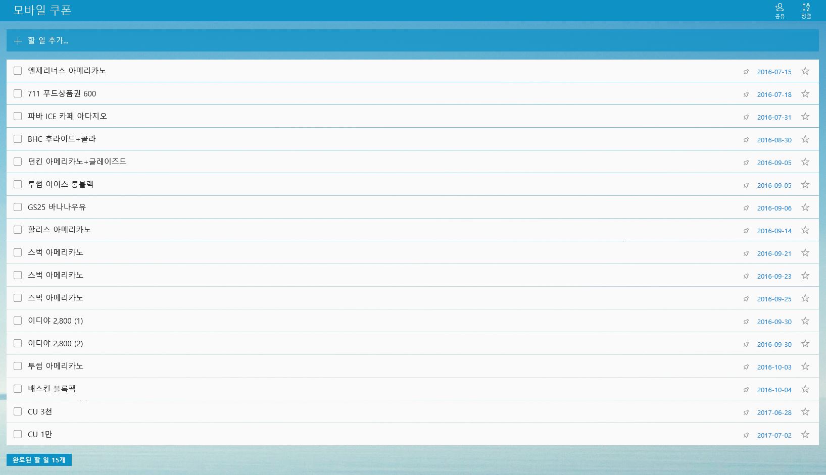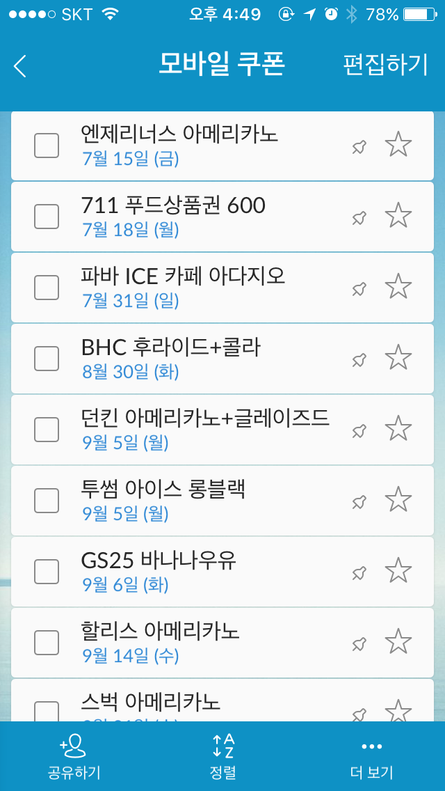 지정한 날짜에 만료알림도 주고, 바코드 열어서 사용하고 바로 완료시키면 목록에서 사라지거든요.