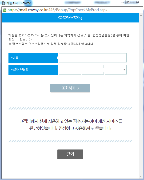 더군다나 제품조회를 해보니 벌써 우리 모르게(?)이미 개선서비스를 완료하였다며;;;;