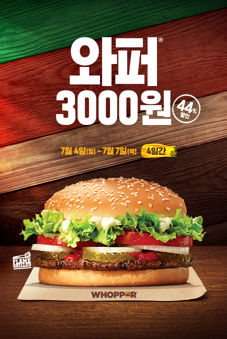 7/4~7/7 4일간 와퍼 3천원이라고 하네요~