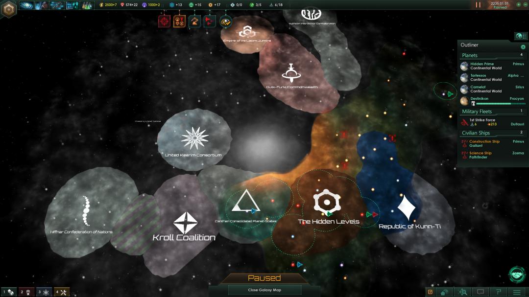 스텔라리스라는 제목 그대로 우주를 배경으로 종족간에 행성을 두고 전쟁을 벌입니다.