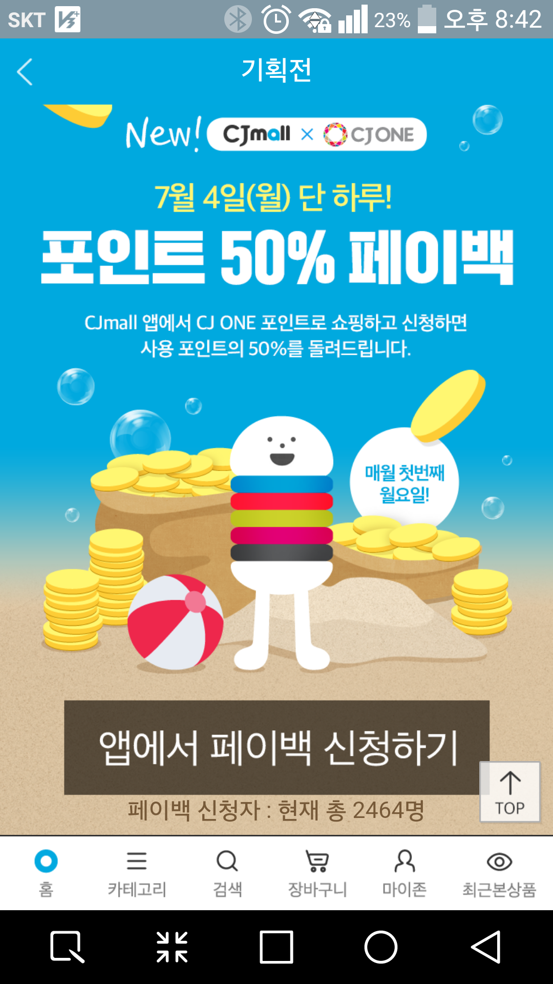 CJmall 원데이행사 원포인트 50프로 재적립 받으세요