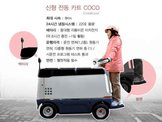 이것에 관련된 기사를 본적이 있습니다. 냉장고와 이동이 가능하고 모터로 사람을 태우고 갈 수 있는 이 야쿠르트 아주머니 카트를 만들기 위해서 우리 나라 중소기업 몇 곳이 정말 힘을 합해서 만들었다고 하더라구요 ^^ 우리나라 기술력으로 만든 멋진 작품이라고 합니다. |