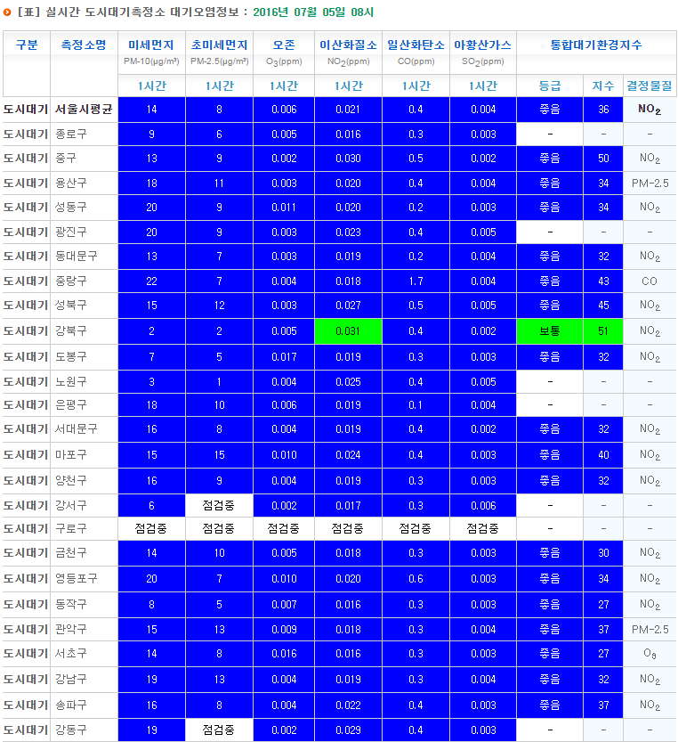 장마 오니까 좋은점 하나는 대기가 깨끗하다는거네요