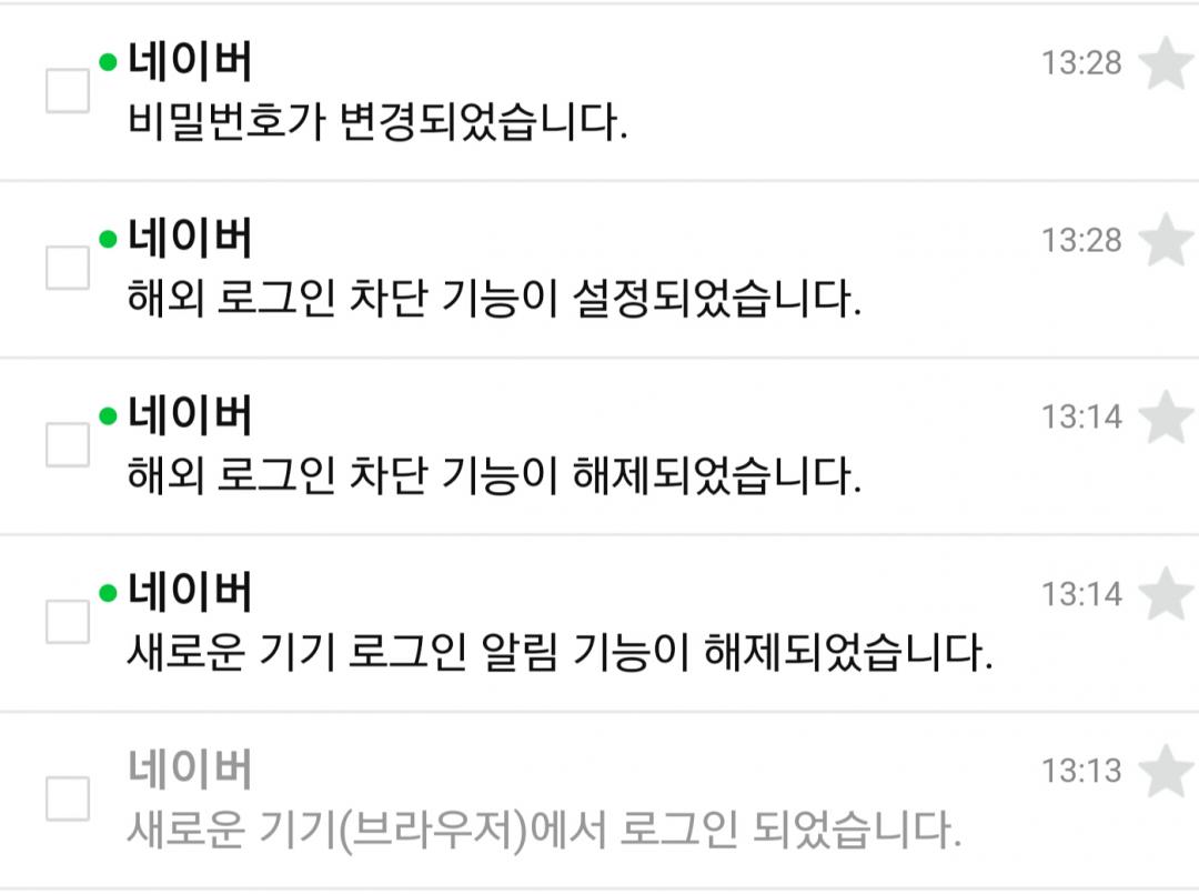 여러분들도 네이버 아이디 해킹 안 당하시게 조심하시길