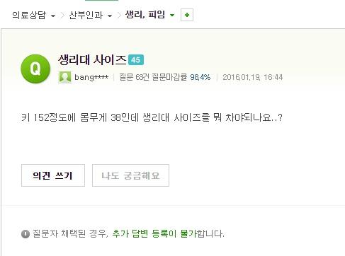 ㅋㅋㅋㅋㅋ 이제 막 생리를 시작했거나 남학생이 한 질문이 아닐까 싶네요