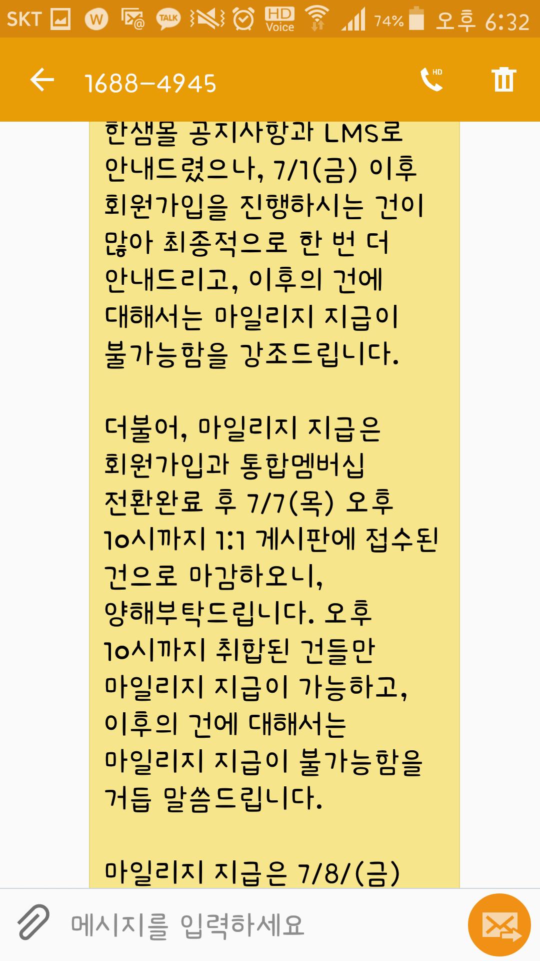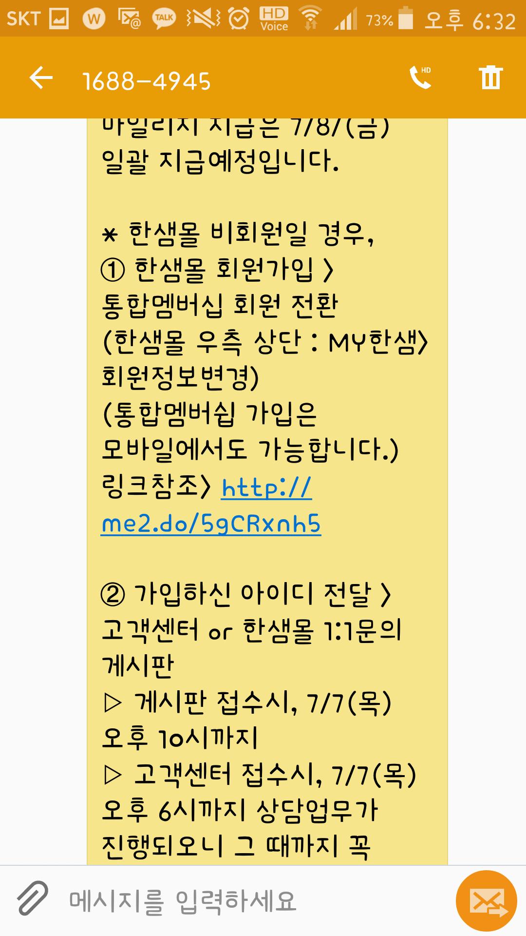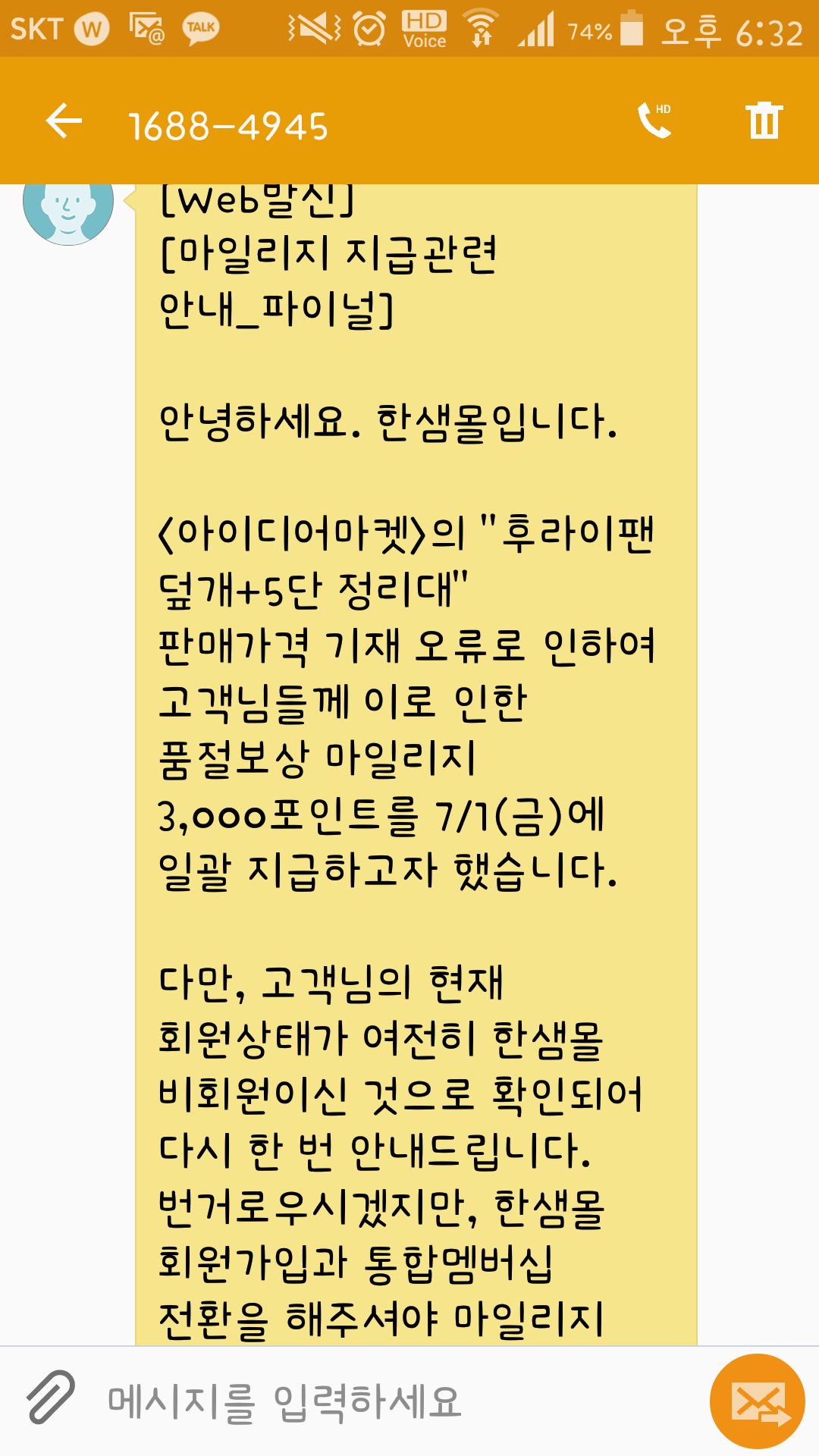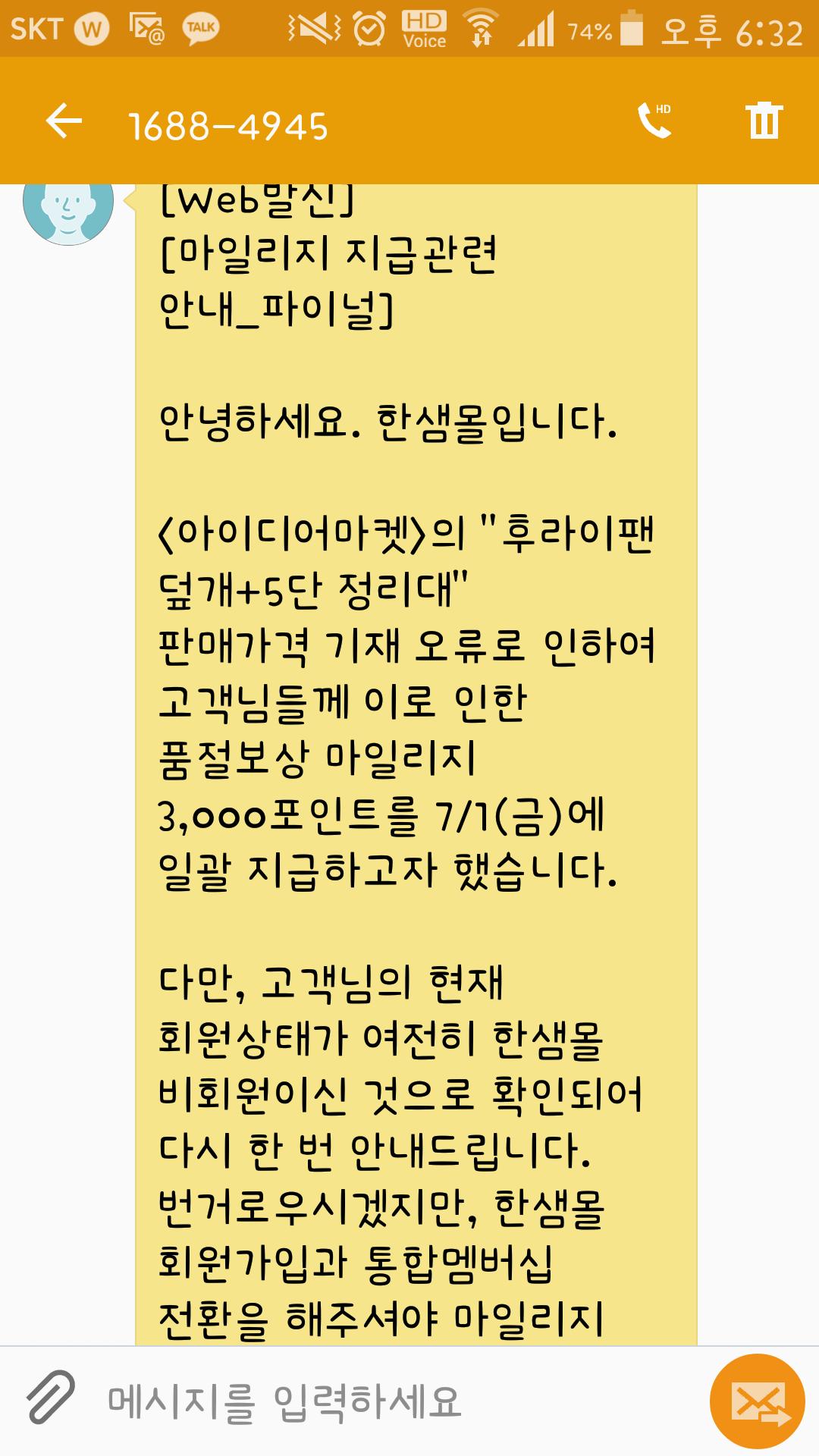 저는 가입 되어 있고 주문도 제가 했는데 왜 받는 사람한테 가입해야 포인트 준다고 문자를 보내는건지 한새몰 물품도 싼건 아닌데 그냥 탈퇴하려구요 |