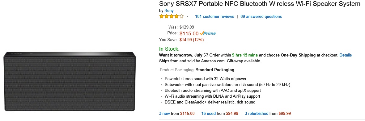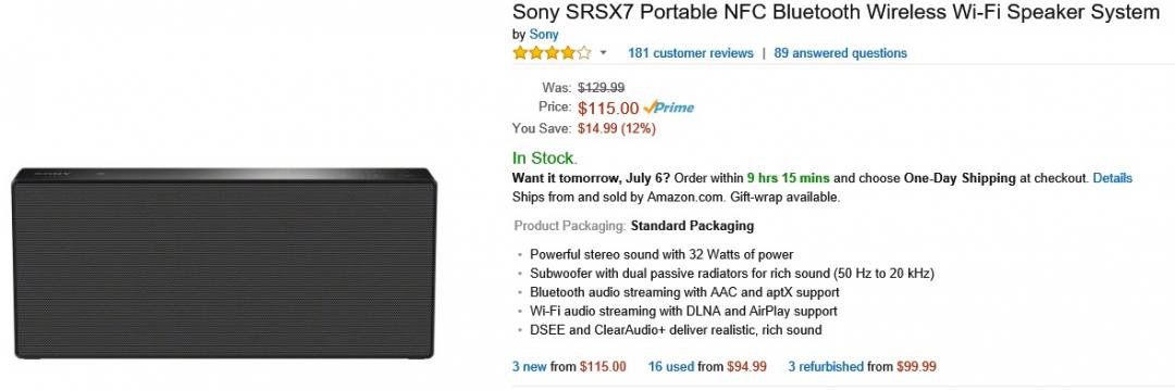 아마존에서 소니 SRS-X7 새상품 115달러 최저가로 떨어졌어요