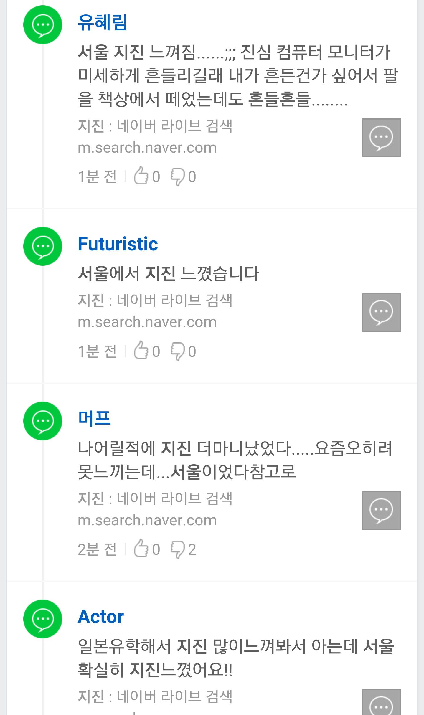 안양인데 흔들린 느낌들어서 인터넷 들어왔는데 허언증이라니요. |
