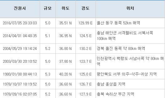 우리나라에서 진도 5이상의 지진은 얼마나 자주 일어날까요? > 자유게시판