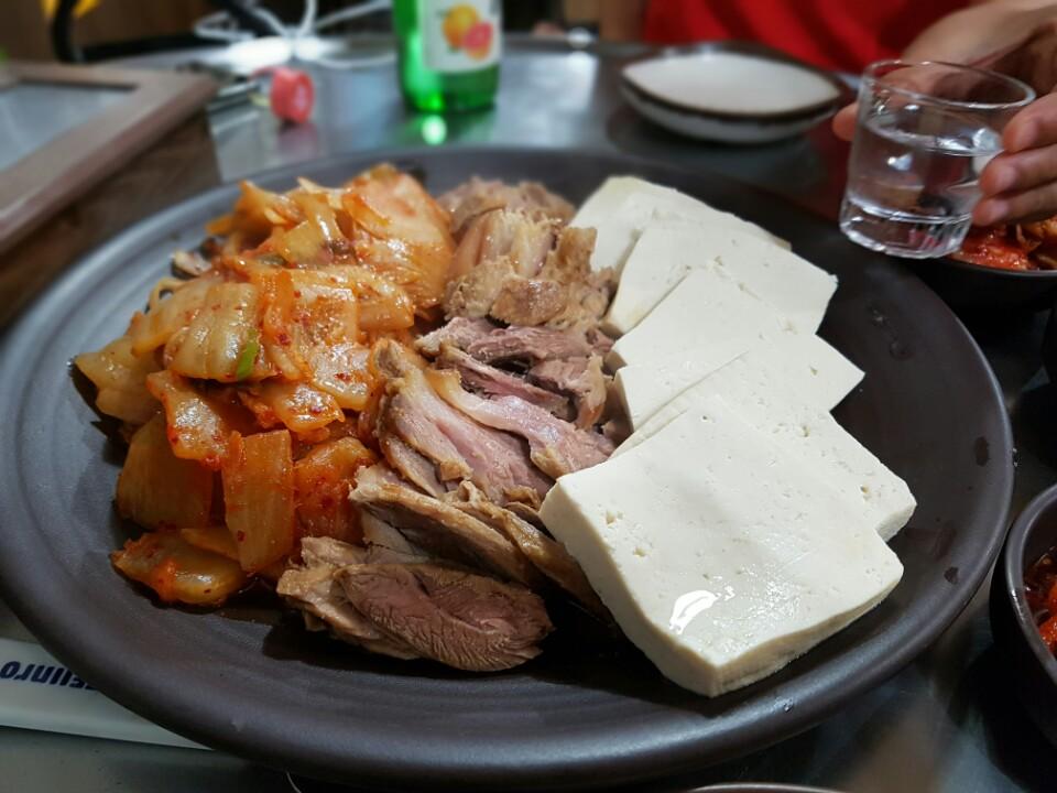 괴기 한점 얹어 김치 싸고 아래에는 두부 살짝 넣으면 술이 쫙쫰! |