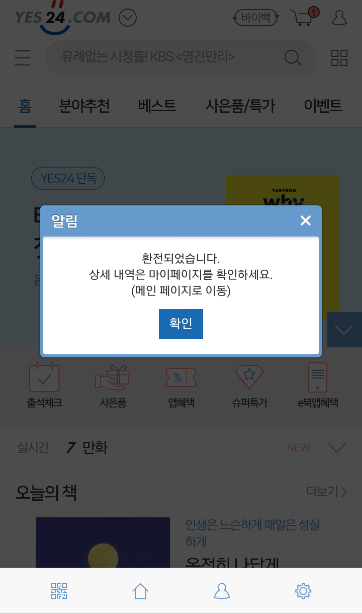 저두 어제 저렇게 뜨더라구요?! 그래서 환전하긴 했는데 무슨 이벤트 중인건가요? 5천원 이하인데 바꿔주다니@_@ |