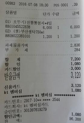 그런데 생탁(막걸리)도 올레 할인이 적용되었네요. 주류는 원래 적용대상 제외 아닌가요?