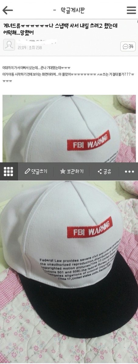 저 모자 보고 지나가는 남자들의 반응은 어떨까여