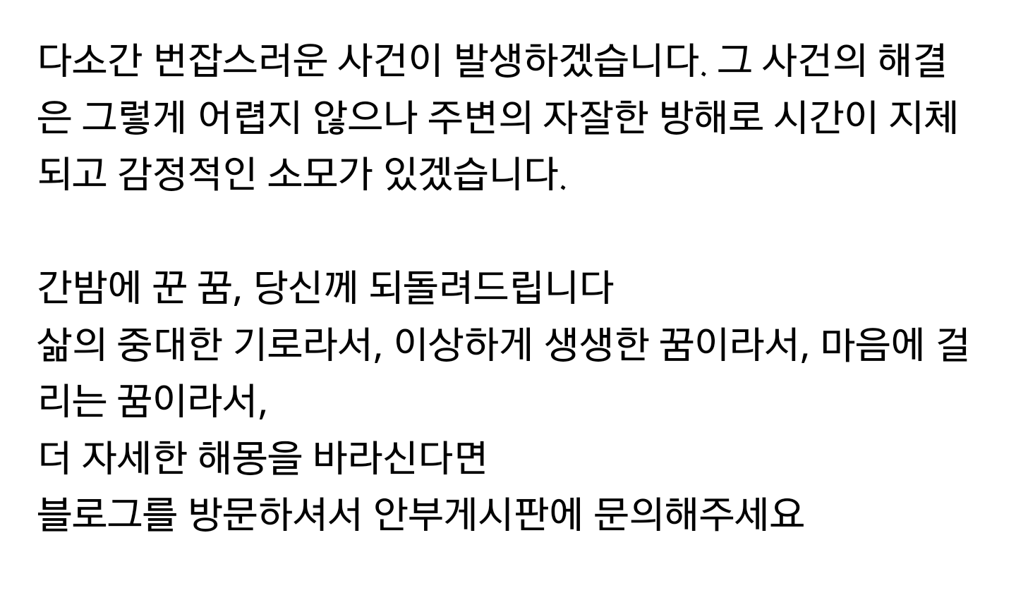 뭐하나 구체적인 내용없이 기분만 찝찝하게 만드는 글을 써놨군요. 연락 꼭 오게 만들어서 돈이나 벌려고 영업하는거 아니겠습니까. 그냥 신경 쓰지 마세요 |