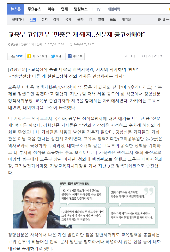 신분제 말하는 게 민주국가의 시민의 자질이 없네.
