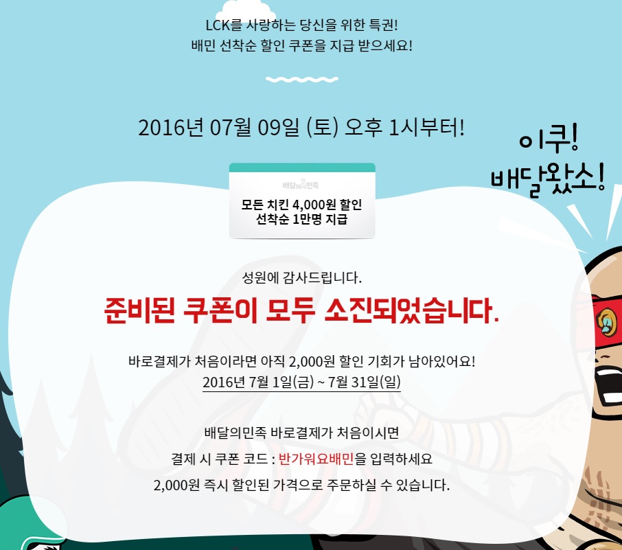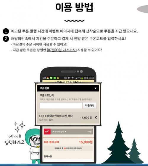 아까 자게에서 보고 받아둔 LOL??발 배민 치킨 4천원 할인 쿠폰코드 나눔합니다~