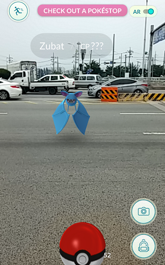 증강현실마냥 화면에 포켓몬이 나타나 몬스터볼을 집어던져