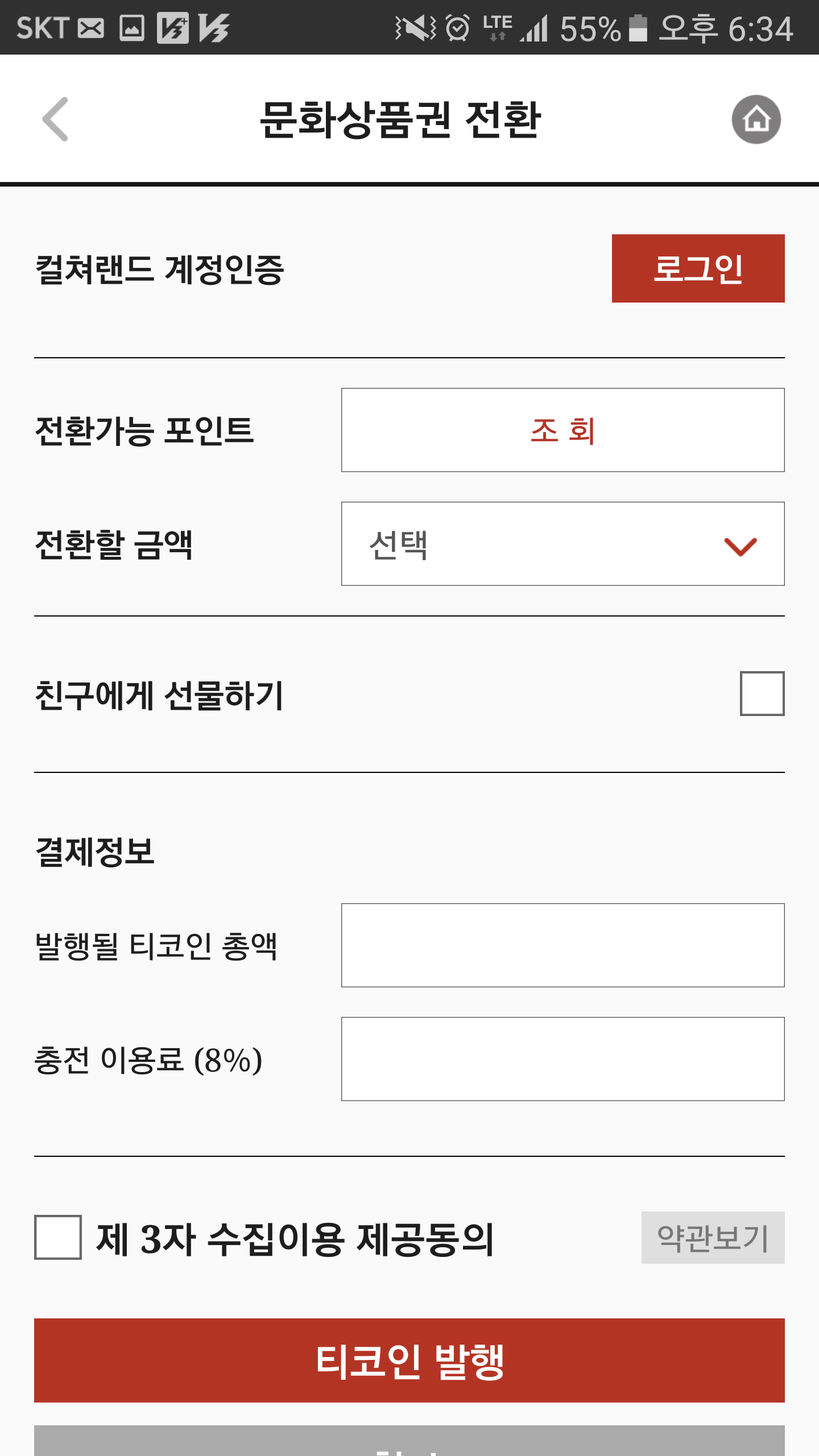 양이 고액이다 하시는 분들은 티코인앱을 설치하고 티코인을 해피머니나 문화상품권으로 전환하기하면 8%수수료 내고 전환 가능해요.