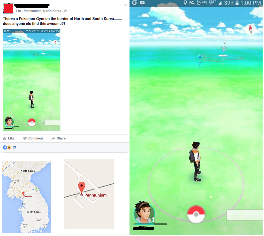 위치 GPS가 판문점,북한을 가르키네요. 포켓몬 얻으려다가 총맞을 각. |