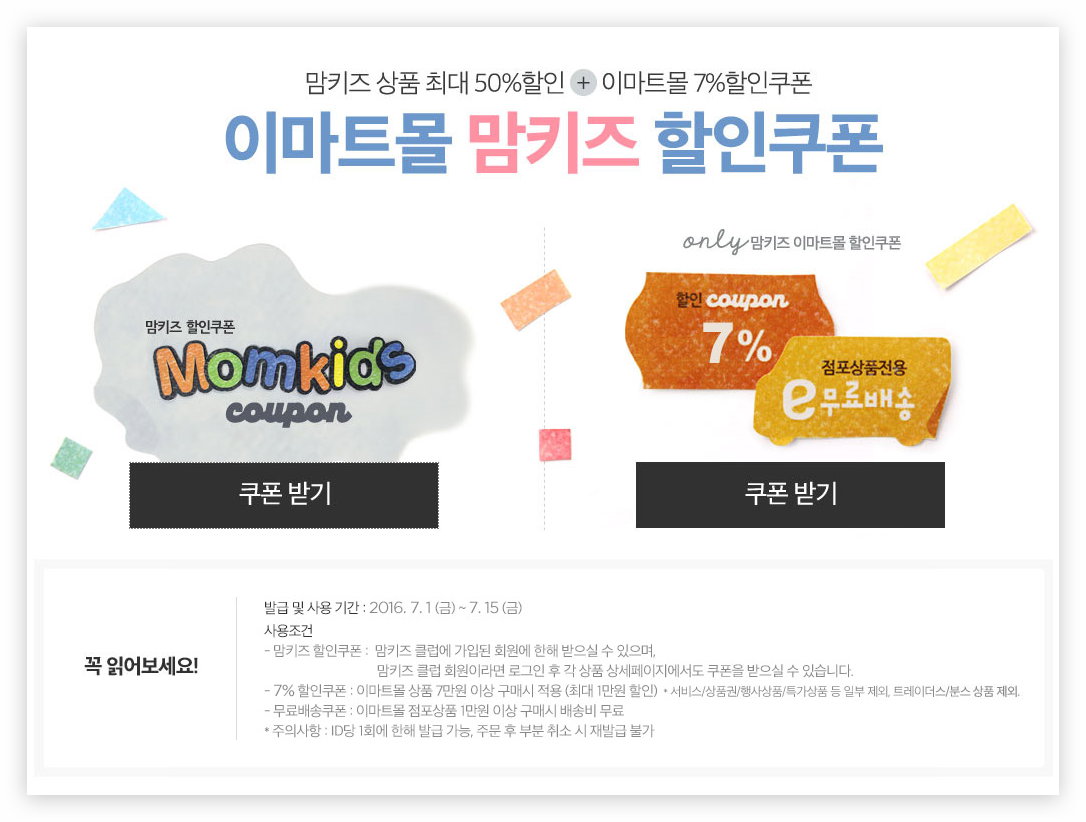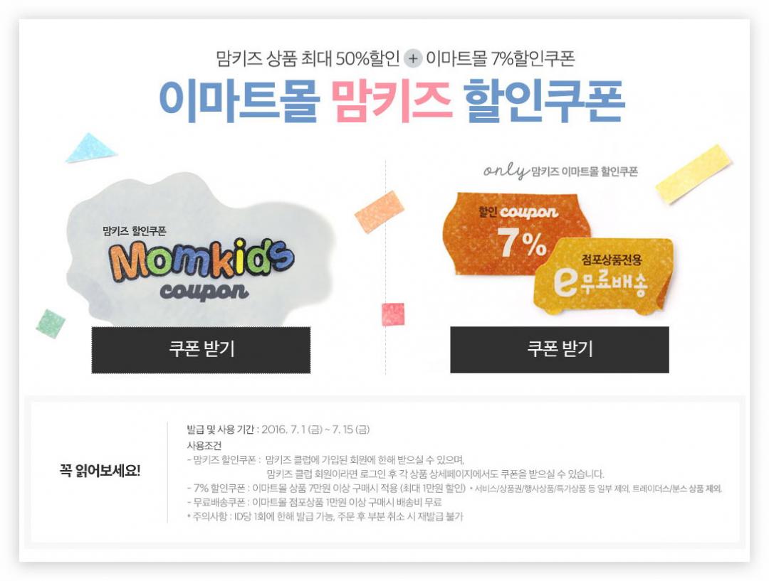 맘키즈쿠폰은 PC에서만 받을 수 있고