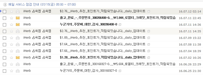 아이허브 에서 포인트 적립해주고 보내주는 이메일 입니다. | ||