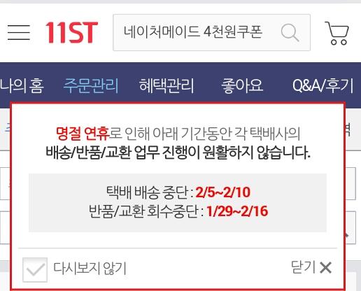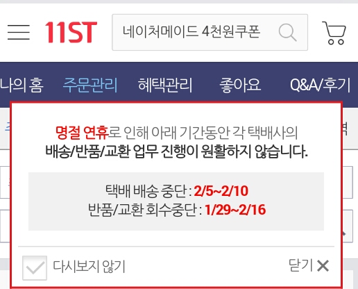 11번가 공지-택배/반품/교환 회수중단 > 자유게시판