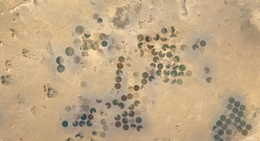 circular irrigation 이라고 원형 관개 방식입니다. |