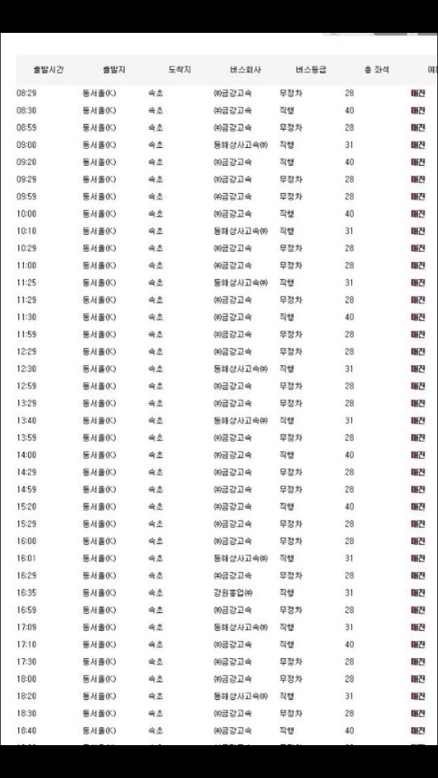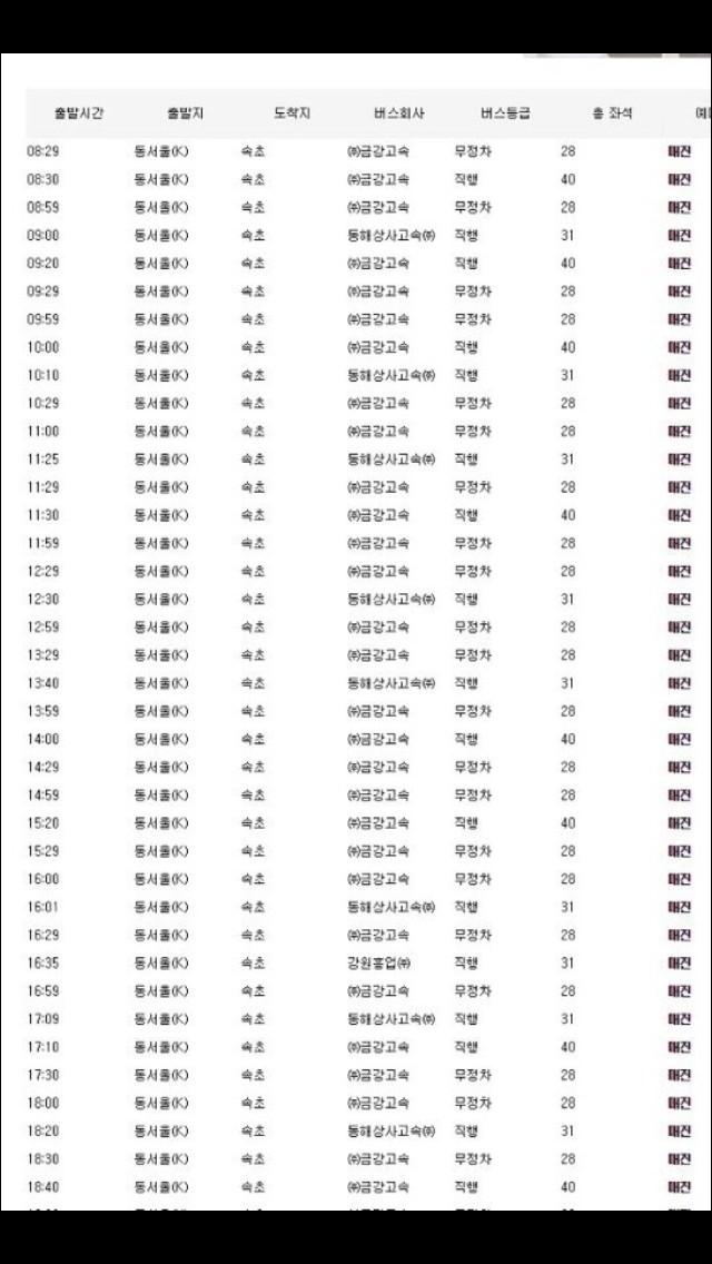 동서울터미널서 속초 검색하면 잔여자석 수두룩 합니다