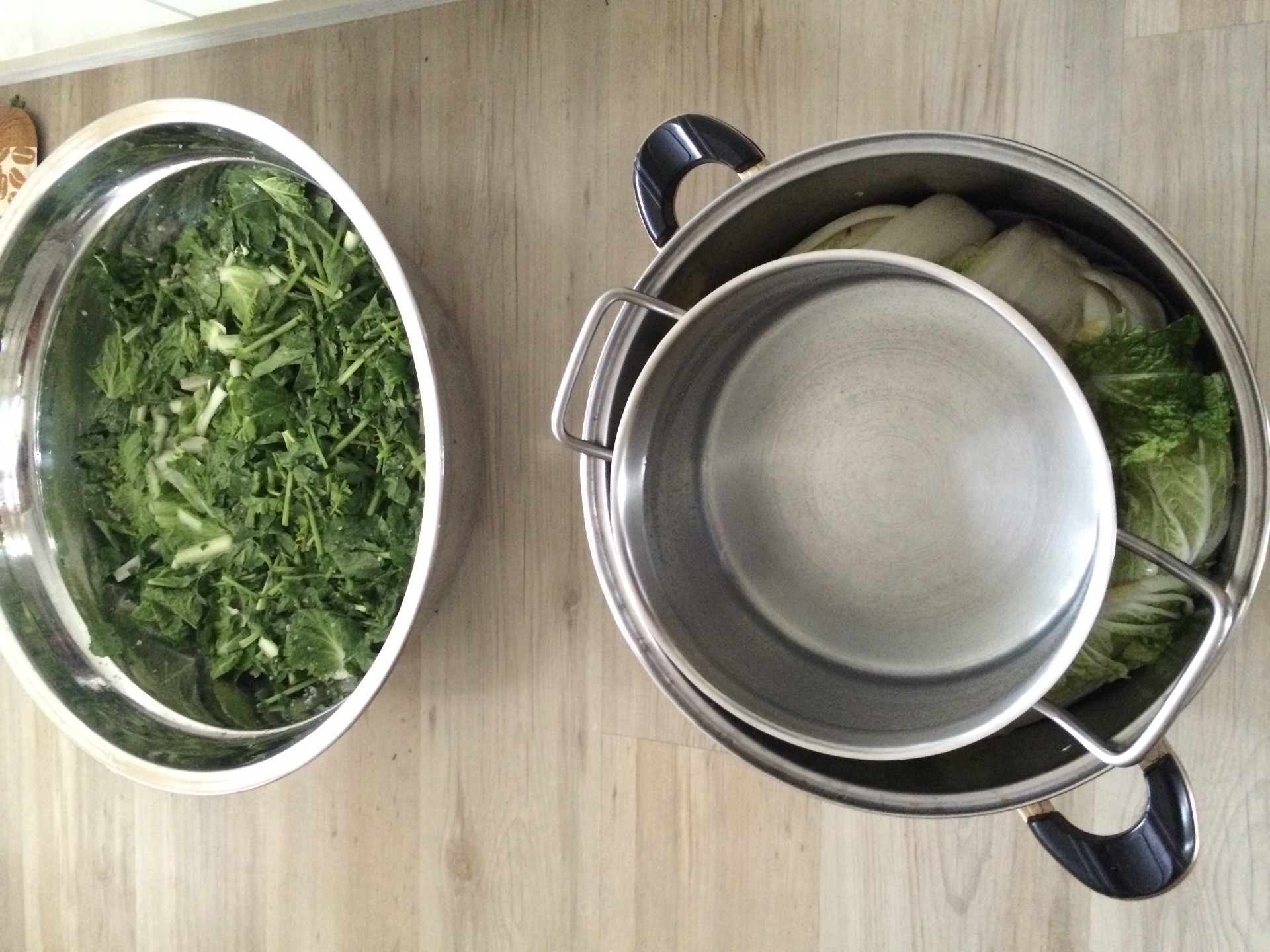 품위있는 채소님들이 바다소금물에 목욕중입니다. |