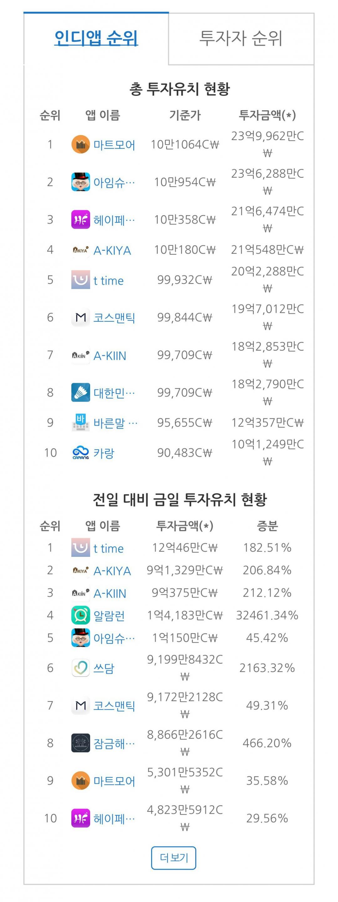 투자자 100위 안에는 못들것 같으니 꾸준히 화력 지원 해야겠습니다