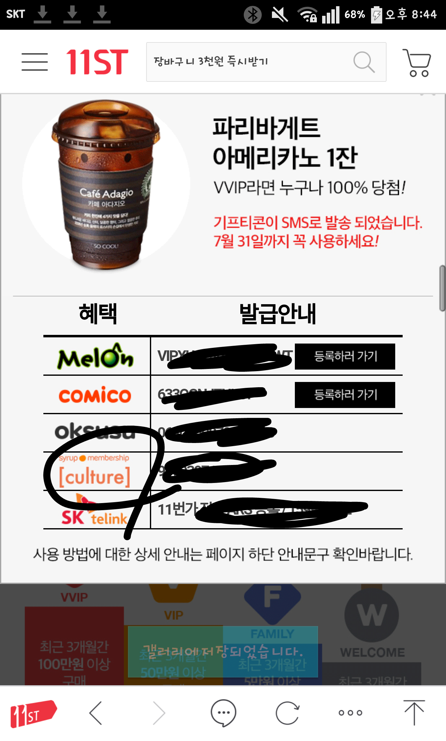 11번가 vvip혜택으로 가입시에 사은품은 안준다고 하더라구요~