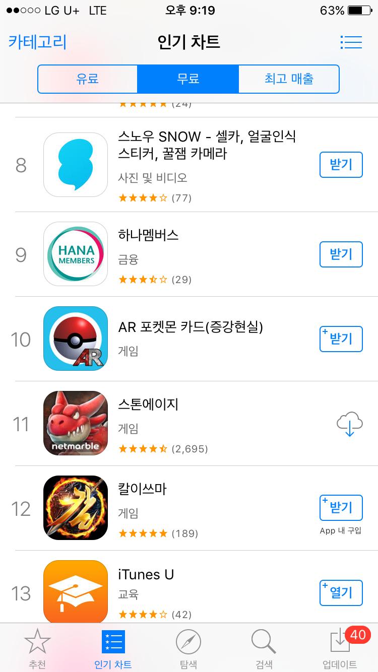포켓몬go 아닌데 다들 다운받아서 순위권에 올랐나봐요 ㅋㅋ